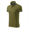 Матеріал: піке, 100% бавовна. Крій з бічними швами. Комір та рукави в’язані в рубчик 1:1. Нижня частина коміра і подолу рукавів з контрастними смугами. Планка на 2 ґудзиках кольору черепашка. Розрізи в бічних швах і нижня планка з контрастною стрічкою. Внутрішній виріз з контрастною стрічкою.
