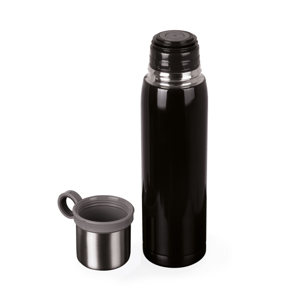 Термос з нержавіючої сталі, кришка з герметичним клапаном. Кришку можна мити в посудомийній машині. Корпус мити тільки вручну щоб не пошкодити кольорове покриття. Корпус вкритий глянцевим кольоровим покриттям. Підтримує температуру до 24 годин. Об'єм 600 мл. Упаковка: індивідуальна чорна коробка та полієтиленовий пакет. Розмір термоса: висота 28 см., діаметр 7 см.