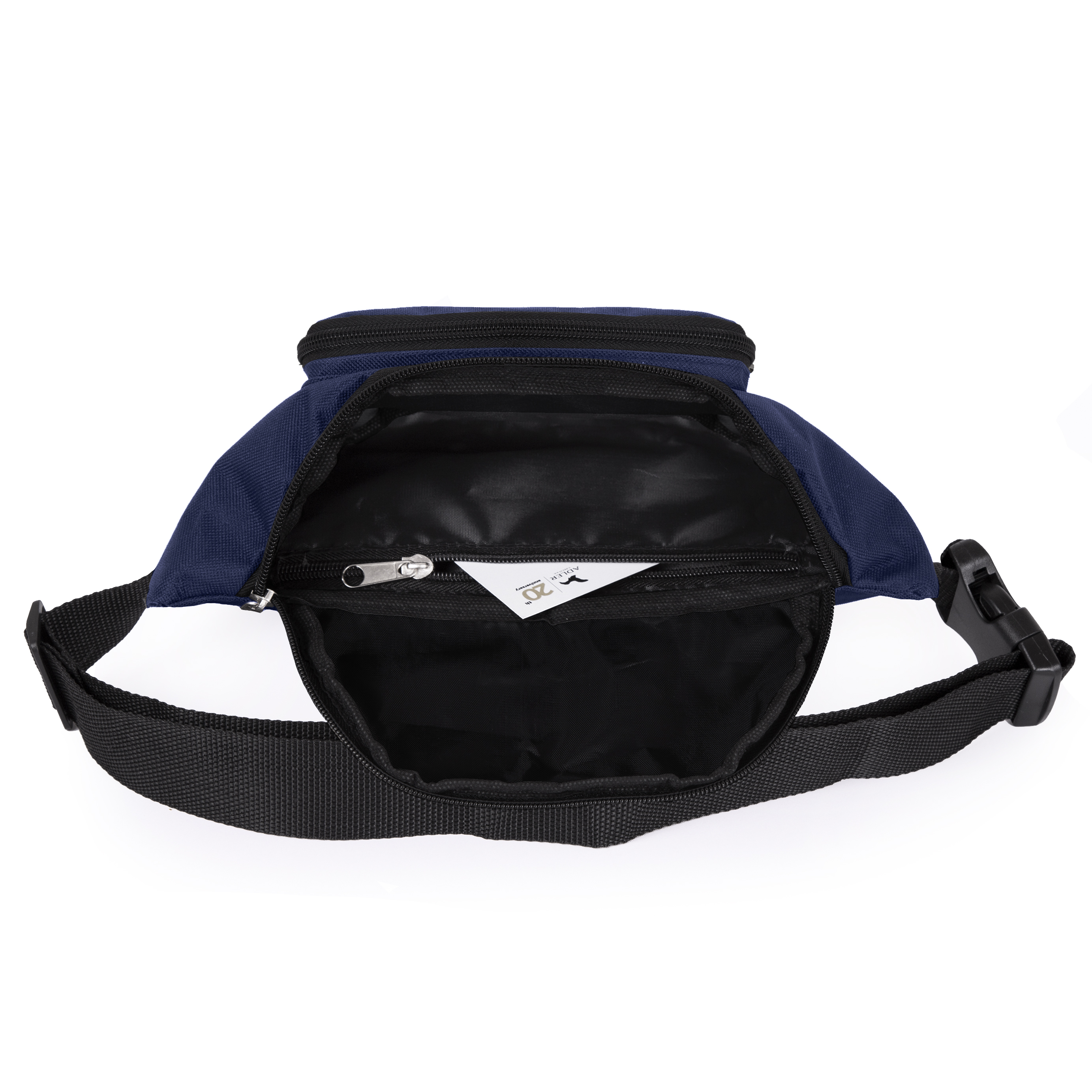 Сумка на пояс з великим основним відділенням, прихованою внутрішньою кишенею та з зовнішньою кишенею на блискавці. Розмір карману: довжина 15см, висота 9 см, матеріал: поліестер 600D