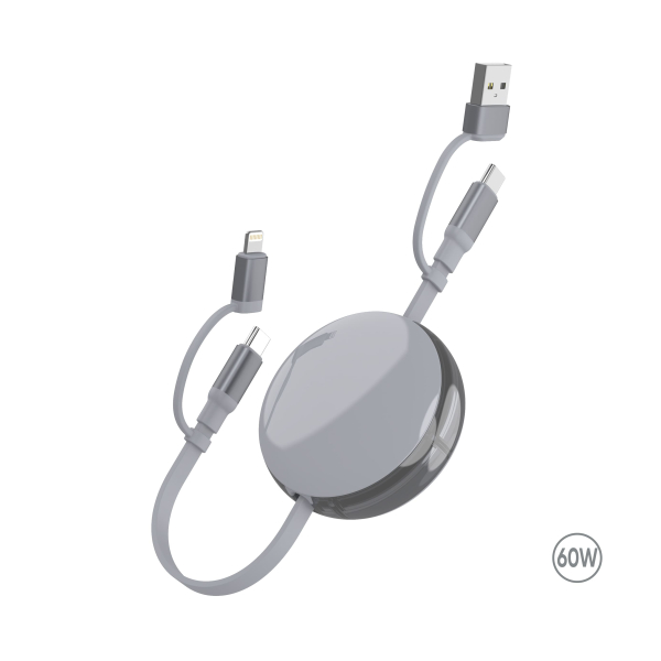 Матеріал: пластик, силікон, метал, алюміній Зарядний кабель 3 в 1 Ving Матеріал: ABS+Aluminum Alloy+TPE Максимальна потужність: Type C → Type C до 60W Type C → Lightning до 30W USB A → Type C до 3A USB A → Lightning до 2.4A