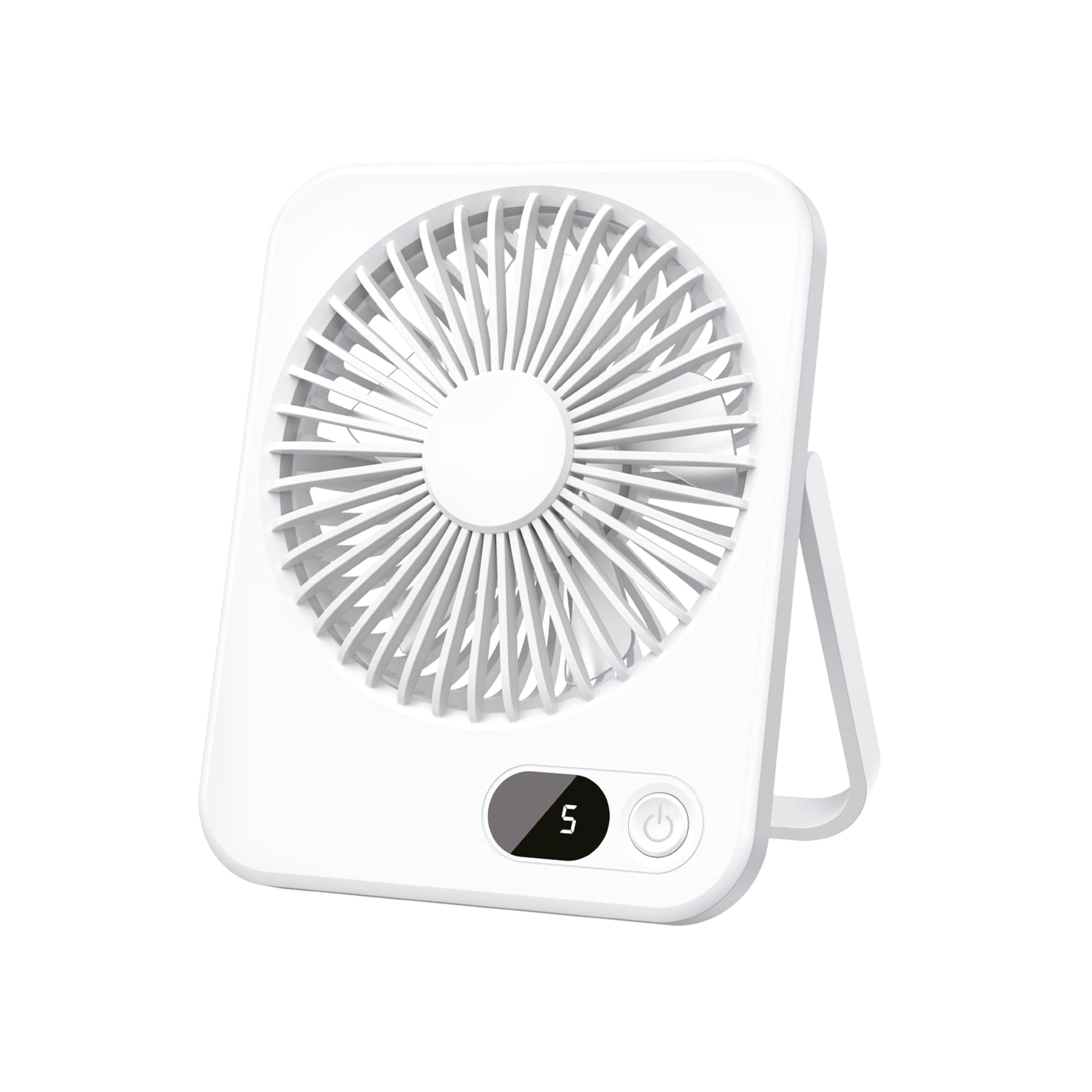 Вентилятор настільний на підставці WindGo з LED-дисплеєм. Лаконічний сучасний дизайн. Регульований кут нахилу.