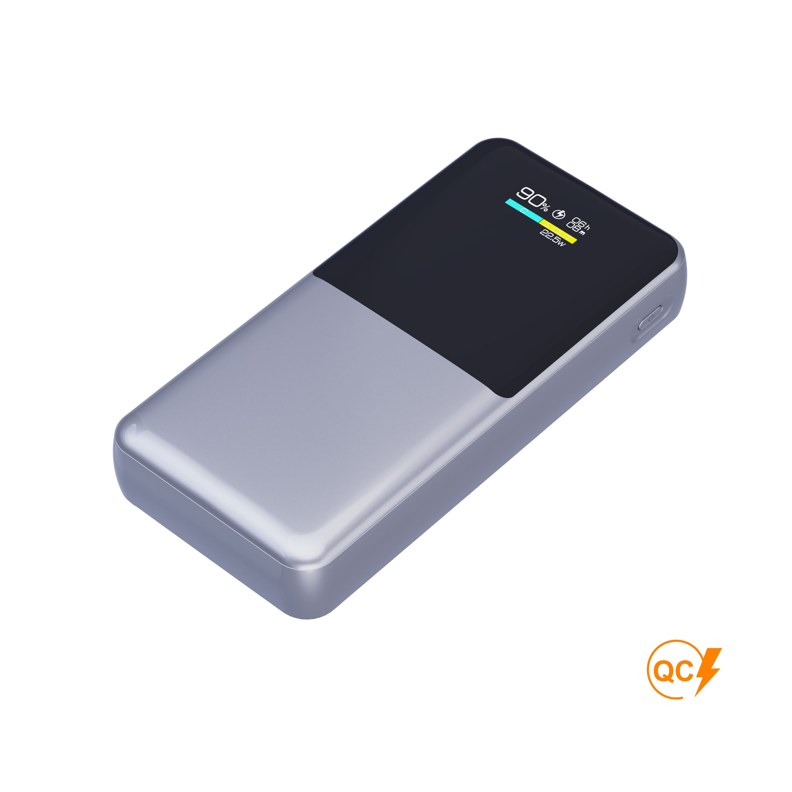 Універсальний зарядний пристрій. Полімерний акумулятор високої якості, широка сумісність. Корпус пристрою ABS пластик. LSD дисплей. Має Quick charge