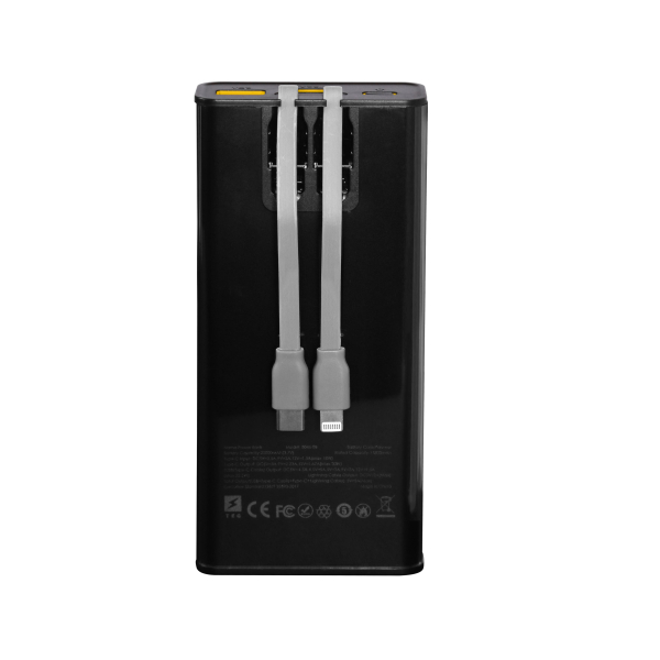 Двухсторонній блок живлення з швидкою зарядкою, підтримка швидкої зарядки 22,5 Вт. Корпус пристрою вогнетривкий пластик . Bulit-in-cable PD 20W+QC 22.5W