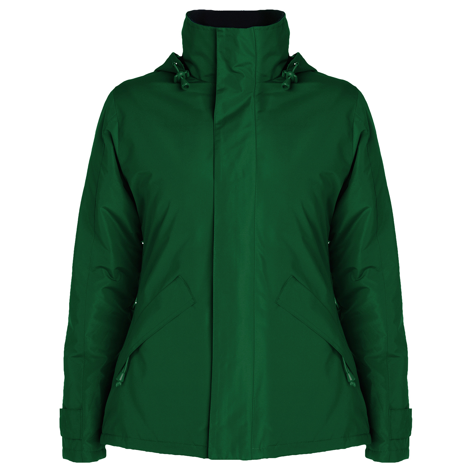 Жіноча класична куртка, зовні 100% водонепроникна тканина, щільність 400 г/м2, стьогана підкладка, наповнювач 100% поліестер. Воріт стійка з флісовою підкладкою в який ховається капюшон з підкладкою та стягуючуюся резинкою з двома стоперами. Основна блискавка з захисною планкою яка закріплюється додатковими липучками, дві бокові кишені на блискавках також с захисними планками. На рукавах манжети з липучками для регулювання, по низу стягуюча резинка з двома стоперами. Модель доступна в 6 кольорах та до пари в чоловічій моделі арт.5077 Europa . В ящику 10 шт., внутрішня упаковка 1 шт., можливість замовлення від 1 шт. Експлуатація – не дає усадку, не вимивається, прання до 40 градусів, не сушити в пральній машині, не відбілювати. Брендування (на внутрішній підкладці є блискавка для зручного доступу при вишивці) – шовкодрук, УФ друк, термоперенос, вишивка, шеврон.