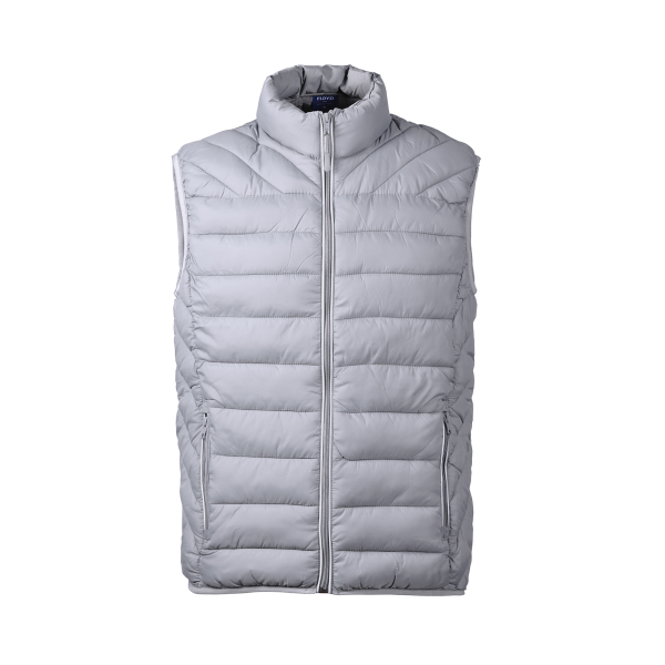 Ергономічний жилет, 100% нейлон , дві зовнішні кишені , набивка поліестер з еффєктом пера, воріт стійка, світловідбиваюча стрічка над блискавкою, внутрішня підкладка нейлон сірого кольору.