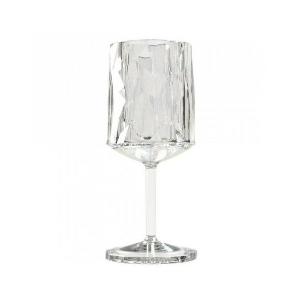 Koziol, Superglas "Club" No.9 - стильний келих, який призначений для подачі вин. Він привертає до себе увагу красивою кришталевій текстурою стінок. Завдяки використанню у виробництві полікарбонату, посуд не розіб'ється і не потріскається. Її використовують для сервірування столу як в домашніх умовах, так і на відкритому повітрі. Келих "Клаб" №9 можна мити в посудомийній машині.