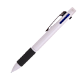 Ручка кулькова багатофункціональна 4 в1 Mumbai з білим корпусом. м'якою силіконовою резинкою, для зручного тримання в руці. Чотири функції в одній ручці: чорне, синє та червоне чорнила та олівець, на кінчику гумка для олівця.
