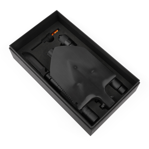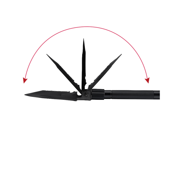 Багатофункціональна лопата для застосування у туризмі. Включає 15 функцій, у тому числі ніж, свисток, викрутка, склобій. Виготовлена з міцних та зносостійких матеріалів, нержавіюча сталь 20cr13 і високоміцний алюміній 6061-T6,зручної конструкції, легко упаковувати, зберігати та переносити. Витримує значні механічні навантаження. Довжина лопати складає 1 метр.