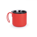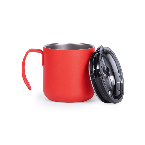 Термочашка з нержавіючої сталі з подвійними стійками, вкрита матовою кольоровою емаллю. Кришка прозора з клапаном. Кришку можна мити в посудомийній машині. Корпус мити тільки вручну, щоб не пошкодити кольорове покриття. Підтримує напій гарячим протягом 6 годин. Висота 8,1 см без кришки, з кришкою 8,6 см, діаметр 8,6 см
