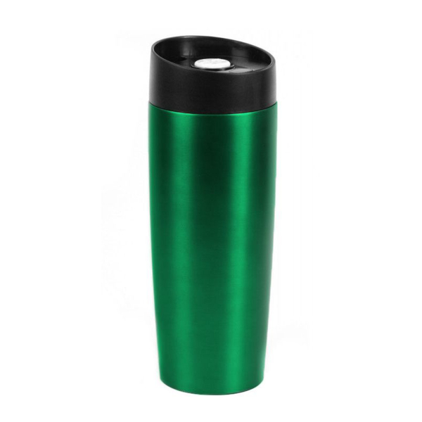 Вакуумна термокружка з нержавіючої сталі, вкрита матовою кольоровою емаллю, кришка-непроливайка з клапаном . Об'єм 400 мл. Кришку можна мити в посудомийній машині. Корпус мити тільки вручну щоб не пошкодити кольорове покриття. Підтримує температуру до 6 годин. Упакована в індивідуальну чорну коробку та поліетиленовий пакет. Розмір індивідуальної коробки: 20,6 х 8 х 8 см.