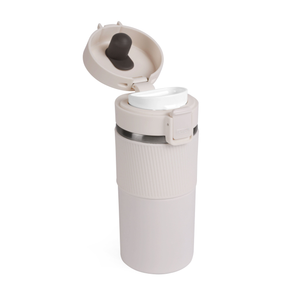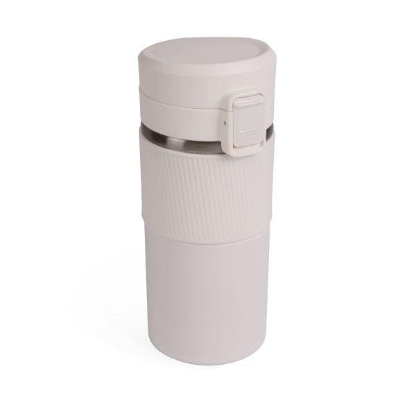 Вакуумна термокружка з нержавіючої сталі, вкрита матовою кольоровою емаллю. Кришка-непроливайка з ситечком, яка при необхідності блокується від випадкового відкривання. Об'єм 370 мл. Висота 18,3 см., діаметр 7,7 см. Підтримує температуру до 6 годин. Упакована в індивідуальну чорну коробку та поліетиленовий пакет. Розмір індивідуальної коробки: 19 х 8 х 8 см.