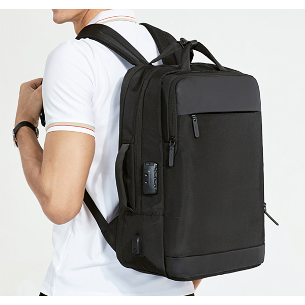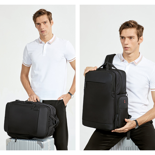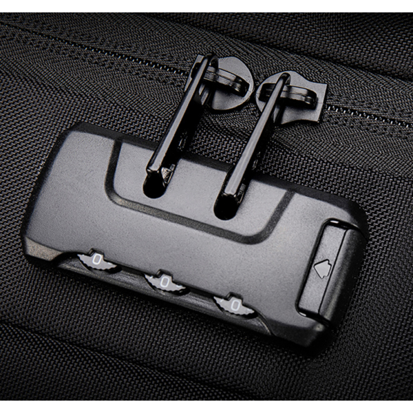 Рюкзак з відділенням для ноутбука 15,6” та відділенням для ipad . Тканина водонепроникний 100% поліестер + PU, має USB Port, захистний кодовий замок, великий відділ з еластичними ремінями для одягу та різні кармани-органайзери, прихована кишеня на лямці для карток, бокова термо-кишеня для пляшки, на задній спинці ремінь для валізи. Також рюкзак має, крім вертикальної ручки, горизонтальну і може трансформуватися в сумку, при цьому задні лямки ховаються в приховане відділленя. Рюкзак можливо збільшити в об'ємі за рахунок складеного відділення.