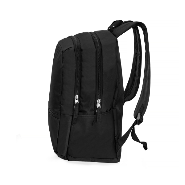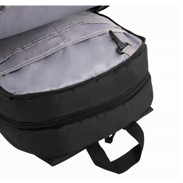 Рюкзак для ноутбука 15,6 дюймів. Одне велике відділення з органайзерами та карабіном для ключів, окреме відділення для ноутбука і окреме для документів, попереду 1 кишеня та 2 відкриті бокові кармани. Ущільнена м'яка підкладка. Поліестер 600D.