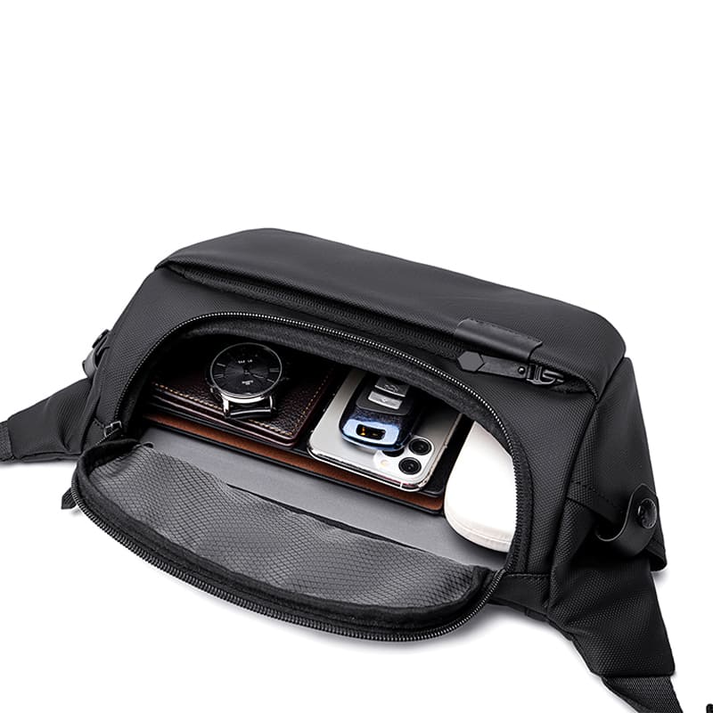 Сумка на пояс Bruno виготовлена з водонепроникного та стійкого до подряпин 100% поліестру. Має велике основне відділення з кишенями-органайзерами і відділенням для планшету в розмірі 9,7". Одна зовнішня кишеня спереду та дві маленькі бокові. Вмістка прихована задня кишеня на м’якій спинці, та ремінь для валізи. В сумку легко вмістити безліч речей, зокрема парасольку, планшет чи записник.