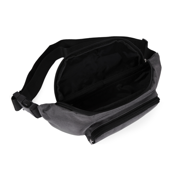 Сумка на пояс з великим основним відділенням, прихованою внутрішньою кишенею та з зовнішньою кишенею на блискавці. Розмір карману: довжина 15см, висота 9 см, матеріал: поліестер 600D